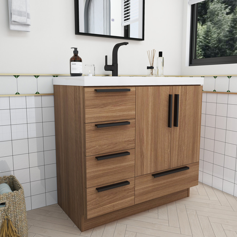 Carla 36" Freestanding Bathroom Vanity with Left Side Drawers Features